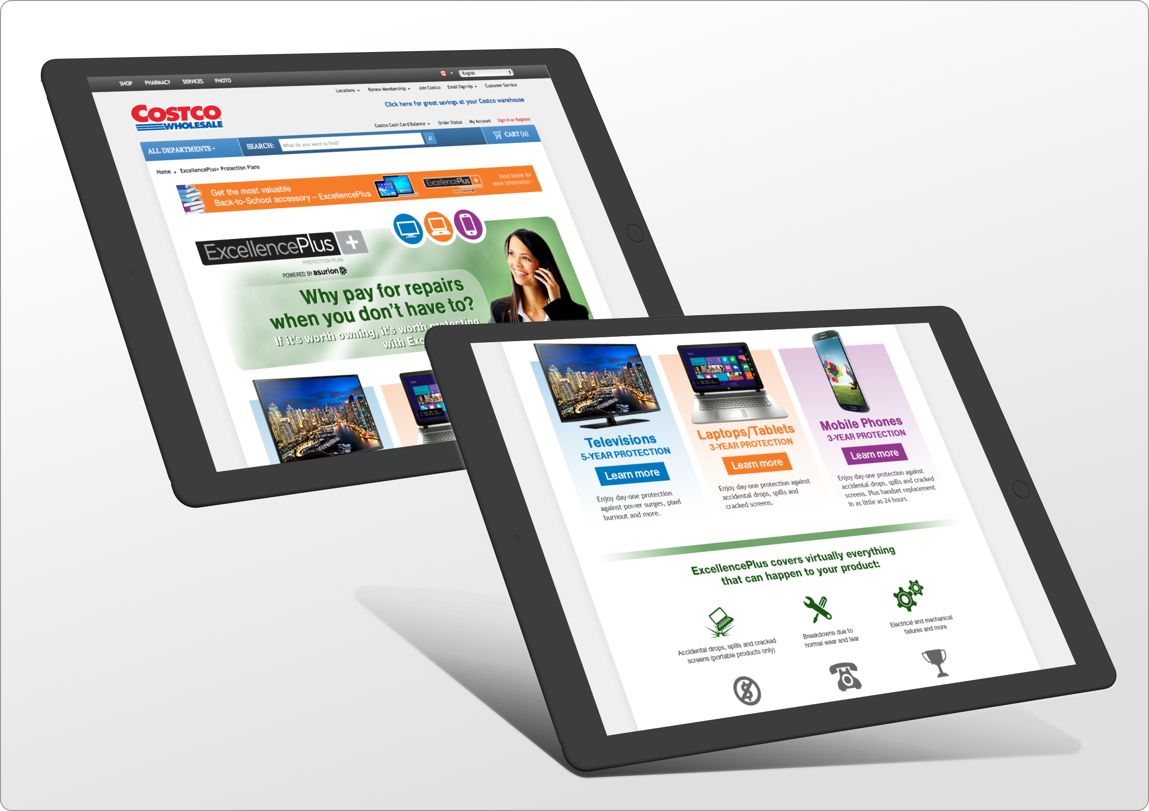 Costco's extended warranty program is advertised under the "Excellence Plus" branding, and it's administered by Asurion. It is this section of Costco's mobile and desktop experience that my team worked on.