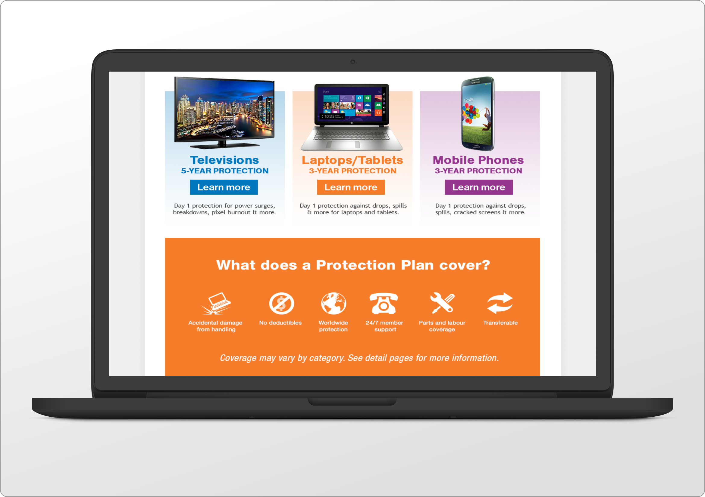 As the process of purchasing extended warranty naturally follows the item purchasing process - which could occur in-store, online or via phone - the first challenge was to create a flawless journey for the user in acquiring additional protection for the product, no matter what the point of purchase was and regardless of whether or not they continued this journey in-store, online or via phone, or through a combination of steps.
