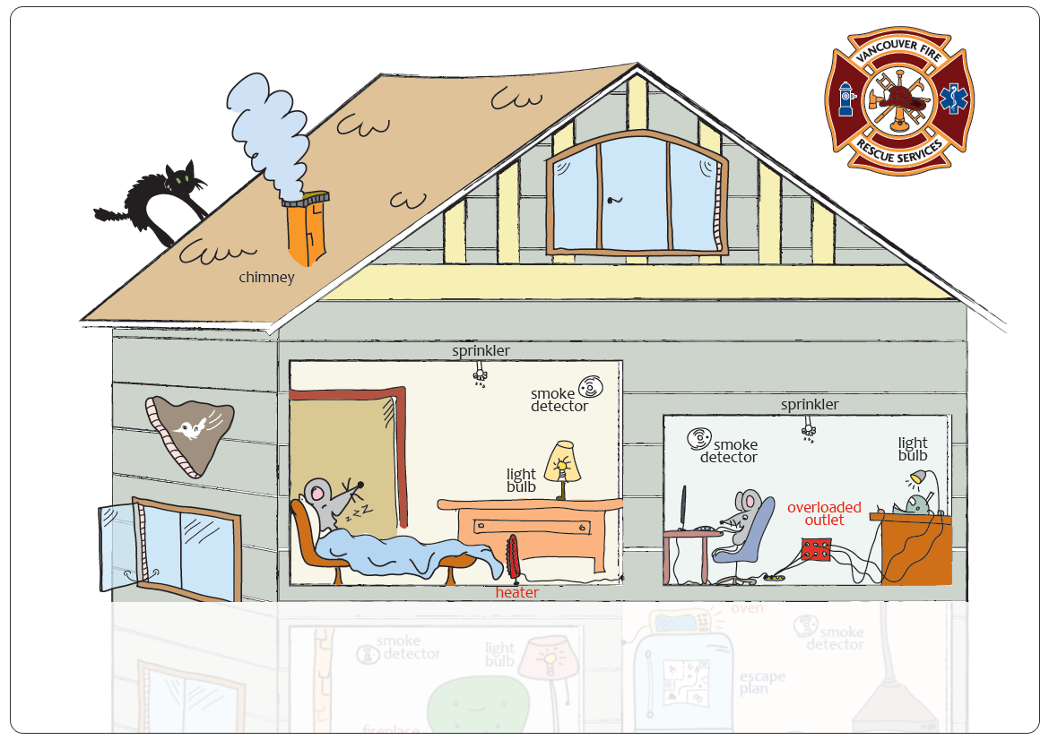 "Help the VFRS raise awareness among local children on the main fire hazards within a typical North American house, while also educate them on things like fire exits and explosion risks found in the attic or the basement of their home."