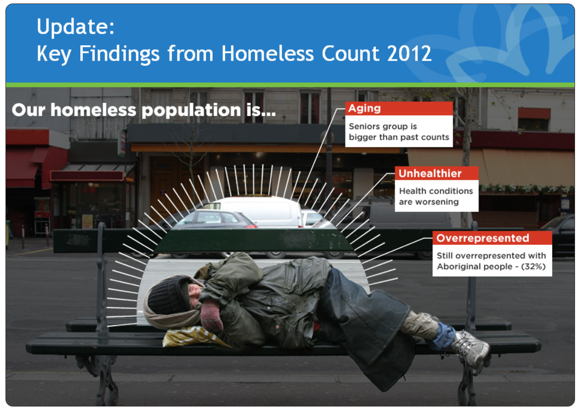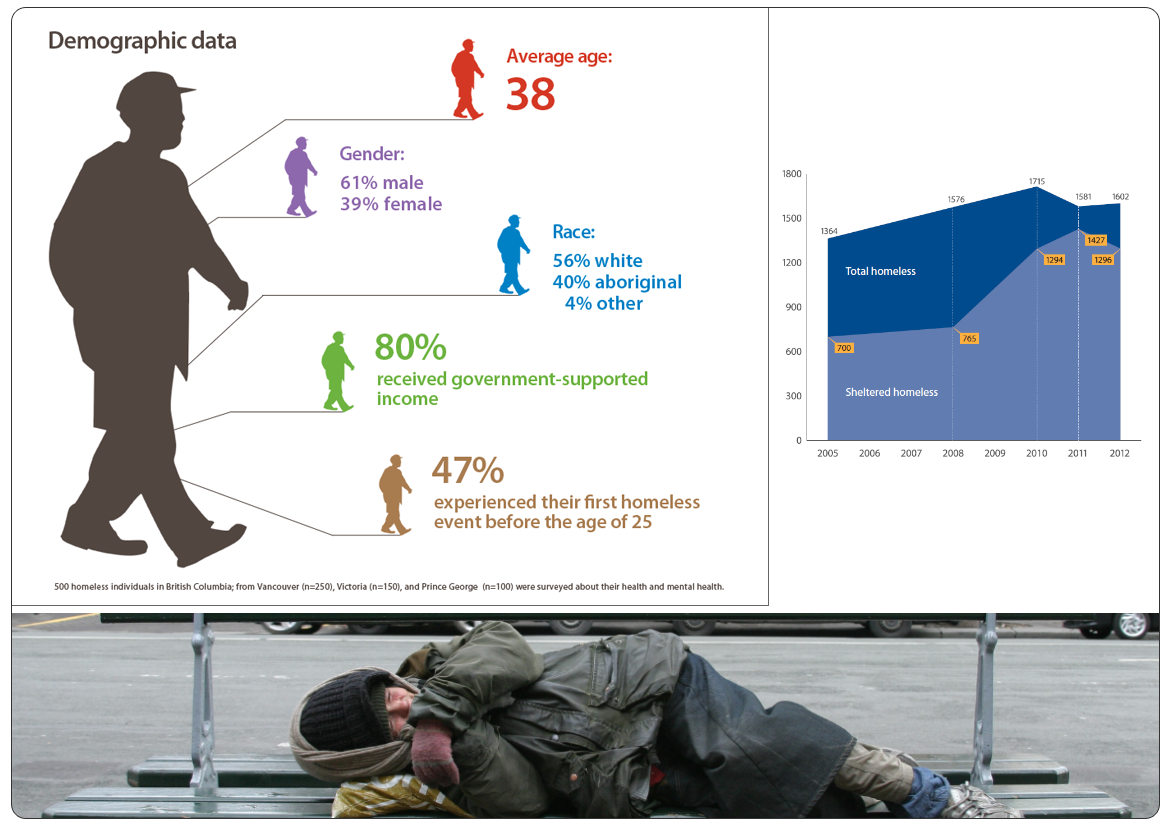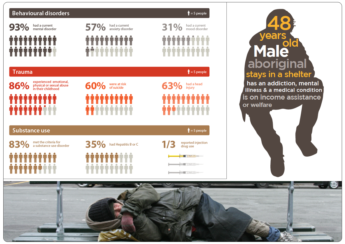 These materials here are part of a series of infographics and charts displaying data on behavioural disorders, trauma and substance use among homeless people - all this compiled in a report presented to the Mayor and the City Council during the Homelessness Action Week.
